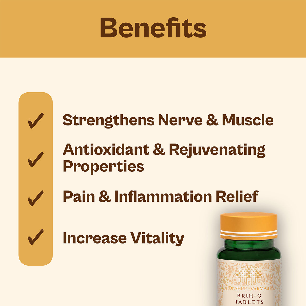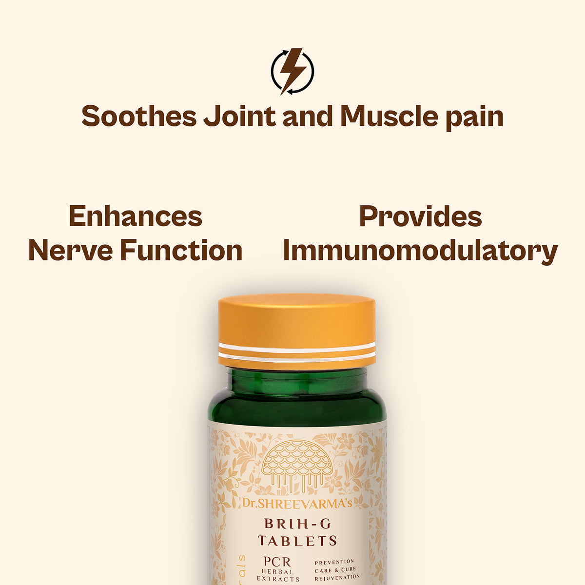 Brih G Tablets are Ayurvedic supplements that help support nerve strength, improve circulation, and reduce fatigue. They are especially beneficial for managing diabetic neuropathy, tingling sensation, and weakness in the limbs.