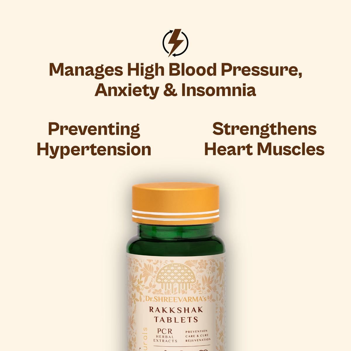 RAKKSHAK TABLETS are designed to support your cardiovascular health and help maintain healthy blood pressure levels. Made with a blend of beneficial Ayurvedic herbs, these tablets offer a natural way to care for your heart and overall well-being.