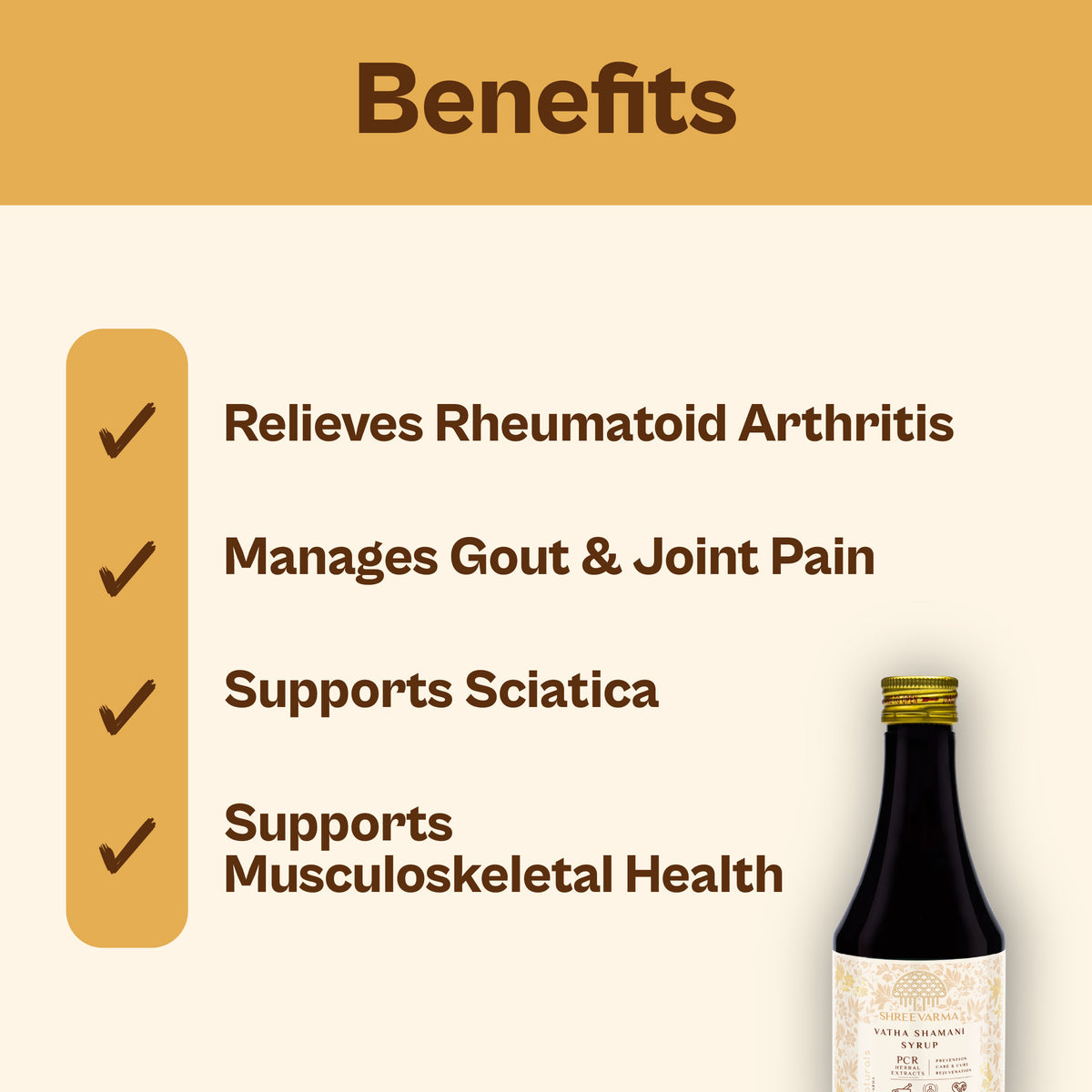 Vatha Shamani Syrup is made with traditional Ayurvedic herbs and is usually well-tolerated. However, patients with severe arthritis should seek doctor’s advice before use.