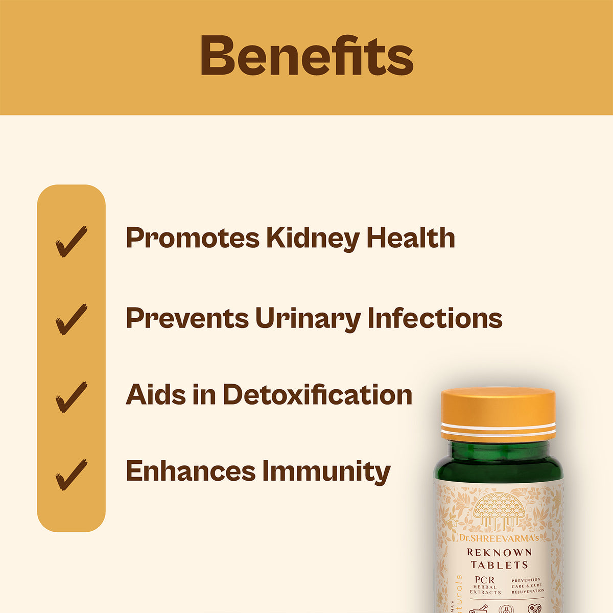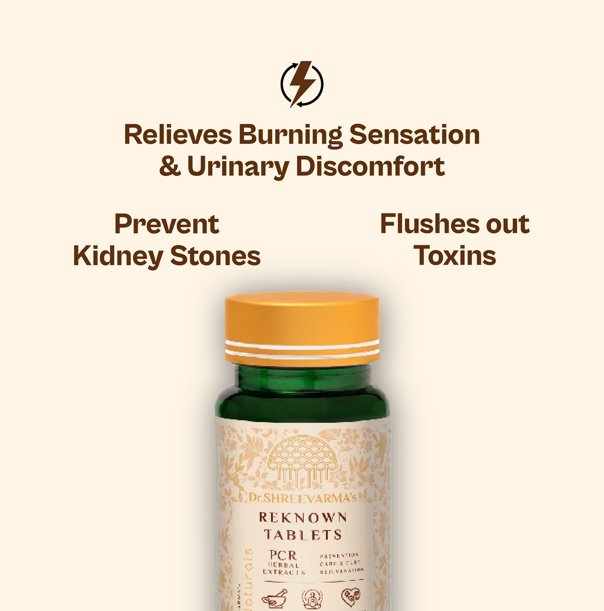 Reknown Tablets are Ayurvedic supplements that support kidney health, promote urinary tract cleansing, and help manage UTIs, kidney stones, and fluid retention.