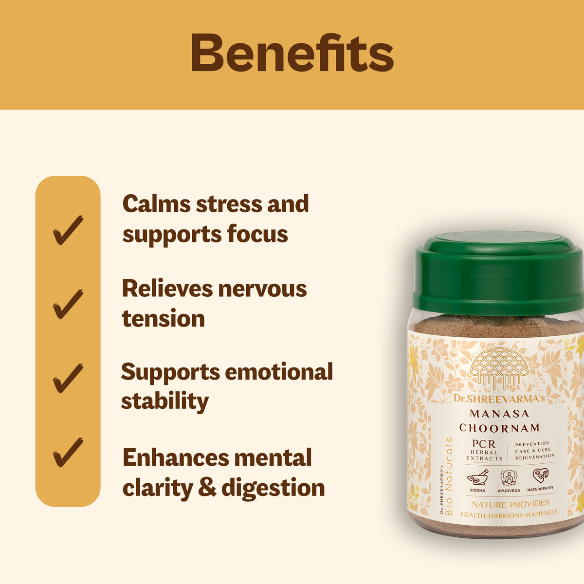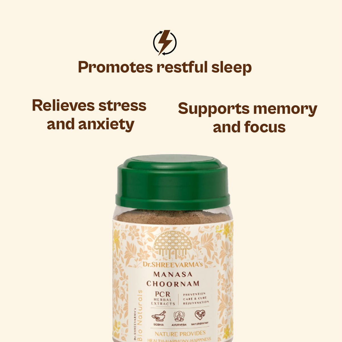 Manasa Choornam is made with natural, non-habit-forming herbs and is generally safe for daily use. If you are on psychiatric medications, consult your doctor before starting this supplement.